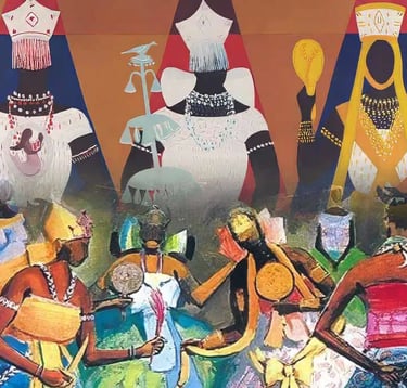Culturally, oriçás are celebrated through toques (ritual drumming), cânticos (chants), and danças sagradas (sacred dances) in terreiros. Each oriçá has unique cores (colors), comidas de santo (ritual foods), and símbolos (symbols). For instance, Xangô (god of justice) is associated with thunder, fire, and the double-headed axe; Oxum (goddess of fresh waters) is linked to rivers, fertility, and gold ornaments; and Exu (messenger deity) governs communication and crossroads. Ritual offerings and obrigações (ceremonial obligations) maintain balance between humans and the divine.